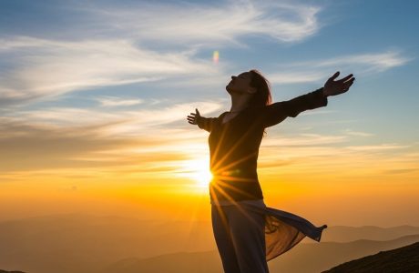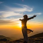A person standing at sunrise representing letting go and trusting God for new beginnings.